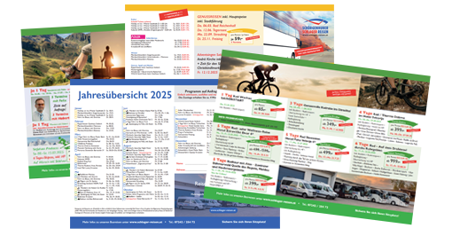 Hier finden Sie Mehrtagesfahrten, Eintagesfahrten, Radreisen, Wanderungen und Pilgerreisen.
